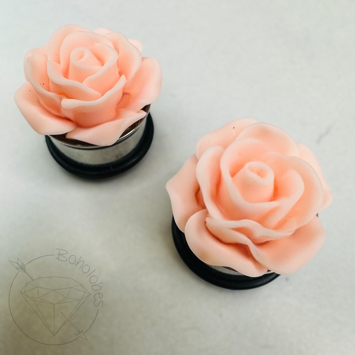Pair of large Resin flower (20mm acrylic cabochon) Single-flare stainless steel plugs made to order in any color or size to pick from below. Plug or tunnel may be sent, depending on size ordered. If you have a preference please notify of preference at checkout.