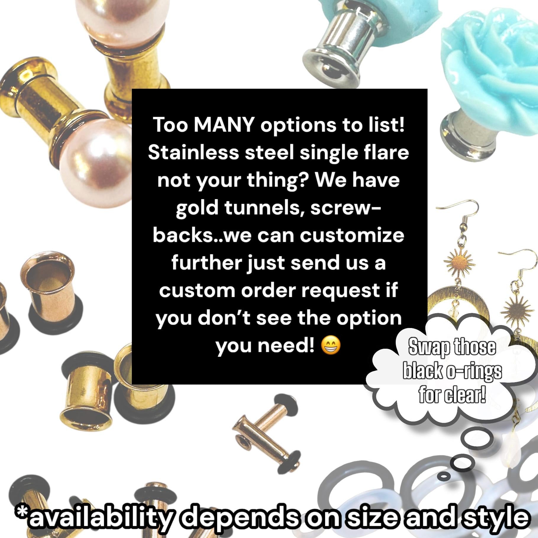 • Single-flare 316L surgical stainless steel wearable area